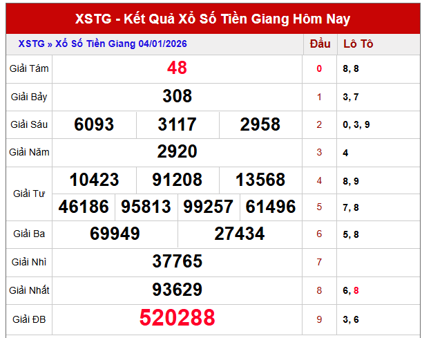 Tham khảo dự đoán xổ số Tiền Giang ngày 11/1/2026